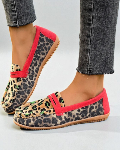 Ces charentaises revisitées adoptent un imprimé léopard audacieux avec bordures contrastées pour un look affirmé. La tige souple et la semelle antidérapante offrent un confort léger au quotidien.